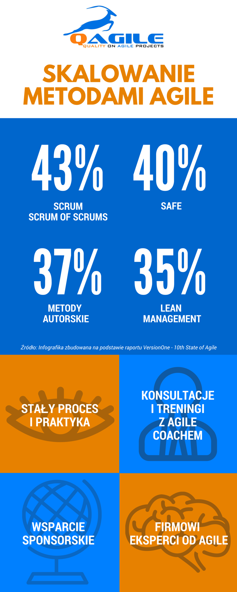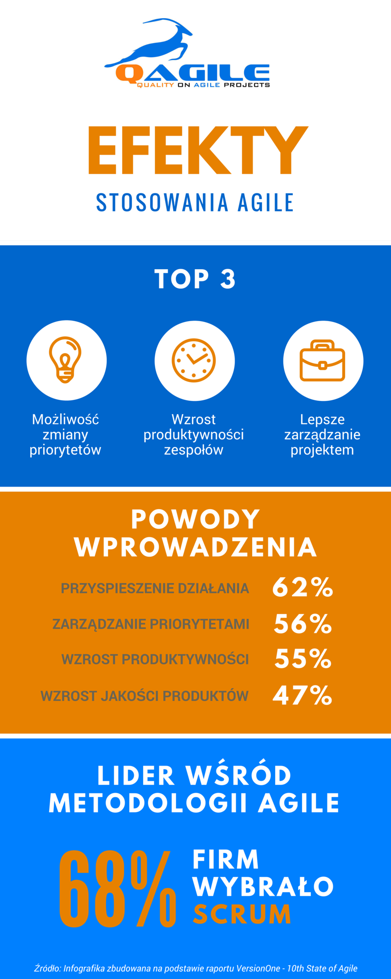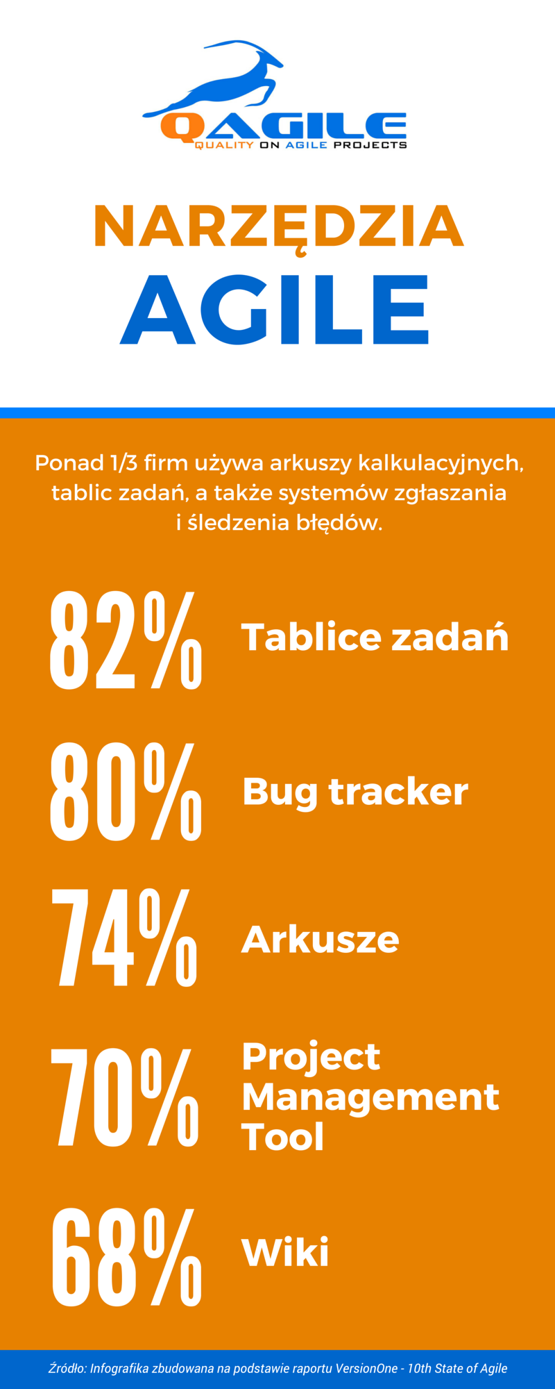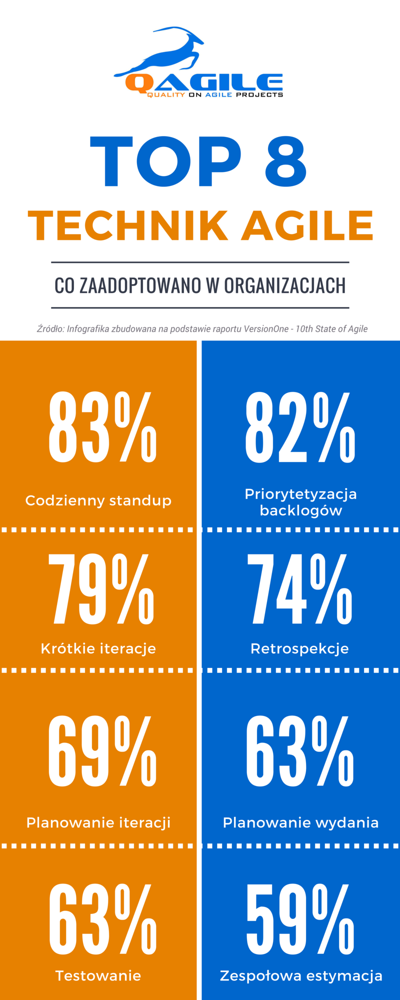 Na podstawie najnowszego raportu VersionOne pt. 10th State of Agile Raport, przygotowaliśmy serię infografik prezentujących kluczowe dane statystyczne związane z wdrożeniem i stosowaniem metod Agile w organizacjach.